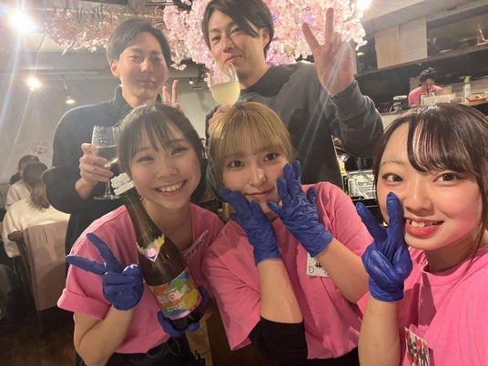 スタッフも桜色のTシャツでお出迎え♪さらに店内が華やかに、お花見を盛り上げます!