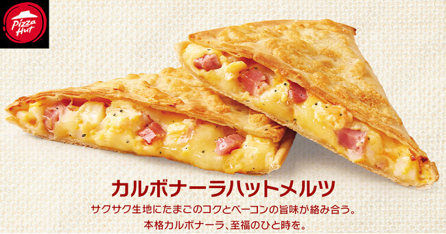 同時にたまごとチーズのコクが絶妙な「カルボナーラ Hut Melts」も新登場!こちらも、ピンク色のベーコンとたまごの明るい黄色が春らしさを感じさせてくれるHut Meltsです。