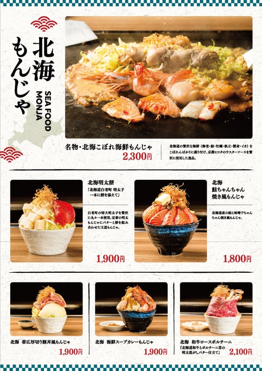 今回は季節限定メニューとして、「知床鶏ハニーバターチキンカレーもんじゃ」と「本鮪ねぎとろもんじゃすき焼き風」が新登場!