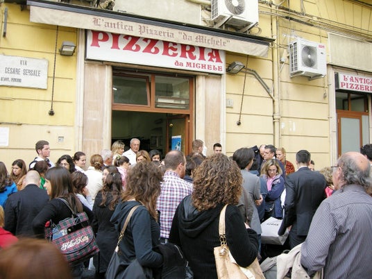 行列嫌いなイタリア人も並ぶナポリ本店。現地の他、ヨーロッパ、アジアを始め各国からの来店が絶えません。