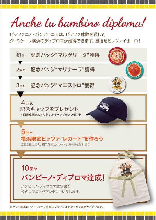 ピッツァニア・バンビーニでは、ピッツァ体験を通してダ・ミケーレ横浜のディプロマ(資格)が獲得できます。