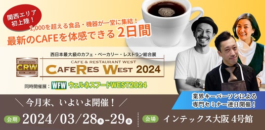来る2024年3月28日(木)~29日(金)の2日間、インテックス大阪にて、西日本最大級のカフェ・ベーカリー・レストラン総合展「CAFERES WEST2024」 を開催いたします。