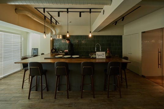 部屋の中心には、大きなコの字型のオープンキッチン。一角には、作家・辻仁成氏の軌道を辿ったギャラリー。食とアートが融合する大人のための文化サロンです。もてなす人と、もてなされる人がカウンター越しに向き合えば、弾む会話と楽しいひとときが生まれます。