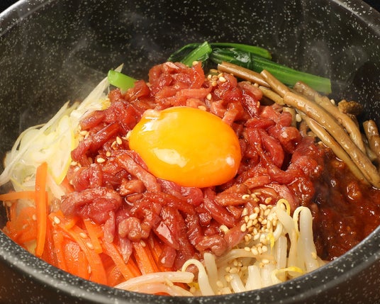 贅沢な牛赤身を使った「石焼ピビンバ」は見た目もさることながら口に入れるとお肉のやわらかさに驚きます!また、贅沢な牛生ハムユッケを使ったメニューは素材の良さを生かして濃厚な卵黄と合わせました。よく混ぜて召し上がるとお口の中で舌が踊ります!