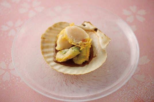 三陸産ホタテと山菜のフリット フキノトウのバーニャカウダ