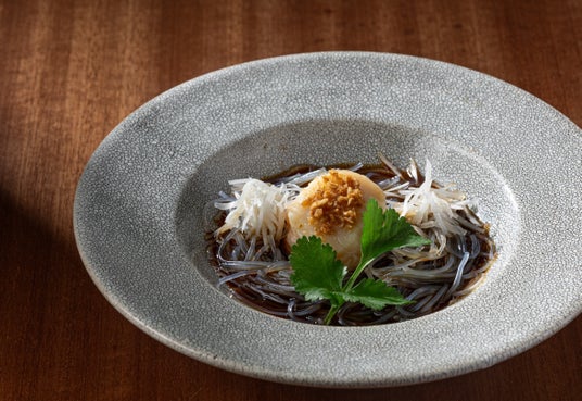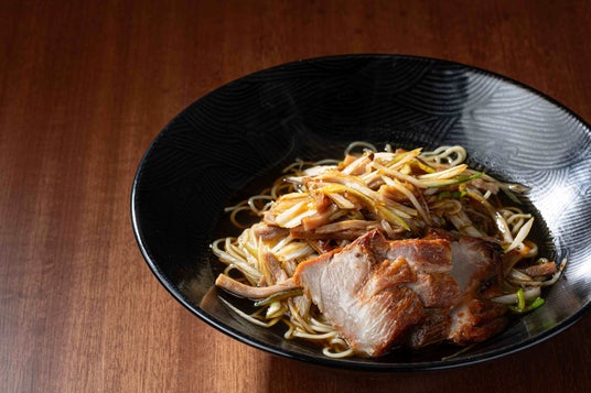 総料理長皆川浩正が30年かけて作り上げた中華そば。広東の伝統を研究し、完成しました。甘辛く炒めた葱とさっぱりとした醤油ベースのスープが良く混ざりあい、絶品の一品になっています。