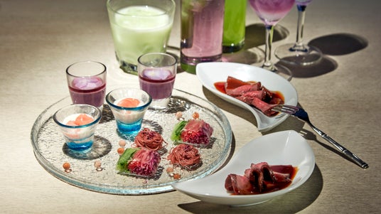 まずは、紫陽花の色味をグラデーションで表現したさっぱりとした味のウェルカムドリンク「Yumekawa☆」でおもてなし。