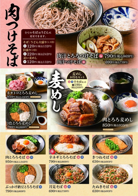 アークランドサービスホールディングス株式会社の子会社、「肉めし岡もと」などを運営する株式会社トビラダイニング(本社:東京都千代田区/代表:大内 勇一)は、とろろそば専門店「東京とろろそば」全店にて、新グランドメニューを2024年3月14日(木)より販売開始いたします。