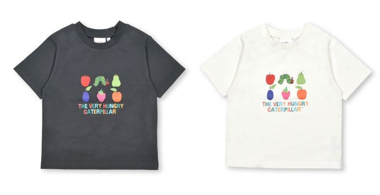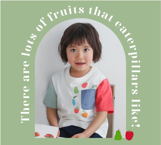 はらぺこあおむしが大好きな食べものがならんだカラフルで楽しいTシャツ。性別関係なく楽しめるシンプルデザイン。はらぺこあおむしならではの色彩に注目! 無地×フルーツTシャツ¥2,530(税込)