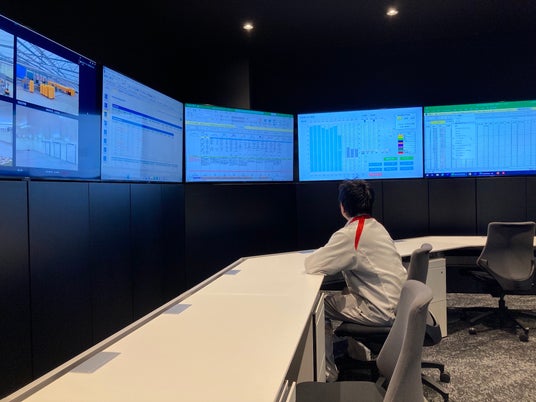 中央制御室(コントロールルーム)栽培エリアの各所に設置したセンサーで栽培状況をリアルタイムでモニタリングし、栽培プログラムや施設内の環境を一括管理します。また、各所カメラのモニタリングにより、全ての作業のコントロールが可能です。