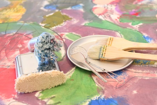 ソースのハケやたこ焼きの油引きなど大阪らしい画材で描く