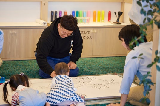 たいぞうさんと絵を描く子どもたち