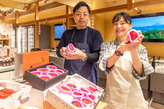 1階の直売所では1粒500円超えの特大苺『古都華』を販売
