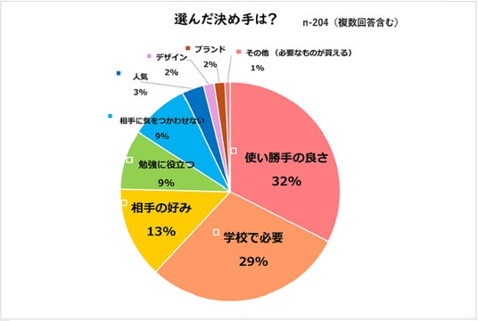 贈り物に選んだ理由としては、相手にとって使い勝手の良いもの、学校に必要なもの、相手の好みにあったものを選ぶという理由が上位3つとなった。せっかくお祝いにいただいた物でも、すでに持っている物で困ってしまったといった声もあり、贈り物を選ぶ際は、相手の希望をリサーチしてから選ぶ方が確実なようです。学校指定のものがあったり、好みもあるため、何を選んでよいか分からず、必要なものが購入できる現金を贈る方が多いという結果となりました。