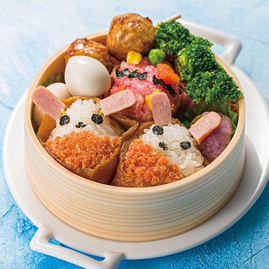 愛らしいうさぎの稲荷寿司など、彩り豊かに詰め合わせ。