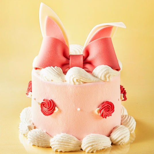 うさぎの耳とピンクのリボンがキュートなショートケーキ。