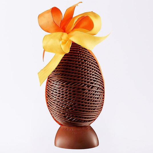 繊細な手編みのレースのような、卵形のミルクチョコレートです。
