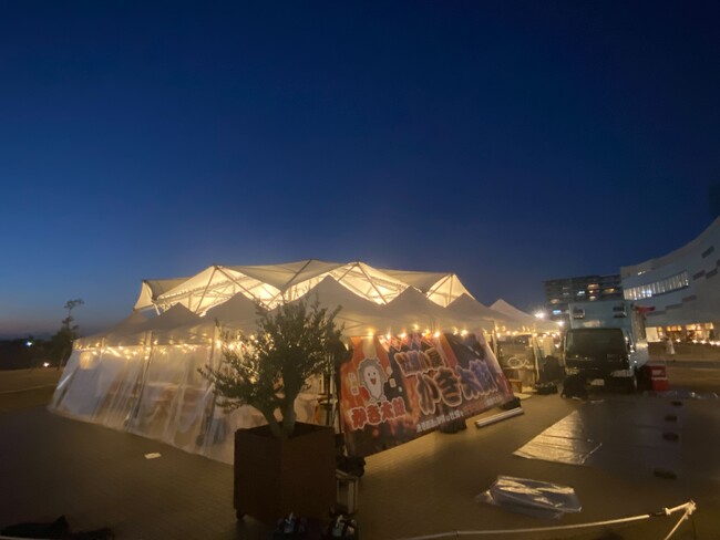 開放感あふれるららぽーとの屋外広場の出張牡蠣小屋で牡蠣の振る舞い汁を無料で提供いたします。