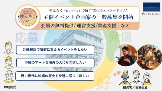 「日本のおもてなしを世界中の人々へ」をミッションに掲げ、日本及び世界の主要都市でホテル・レストラン・バンケット展開する株式会社Plan・Do・See(プラン・ドゥ・シー 本社:東京都中央区、代表取締役:野田豊加、以下「PDS」)は、沖縄県那覇市の中心街として知られる国際通りに国内外で8施設目のホテルとして開業した「Southwest Grand Hotel(以下、「サウスウエストグランドホテル」)」にて、2023年11月より開催しているエコツーリズムイベント「ゆんたく SUNSET」のオープン化として、主催イベント企画案を地域住民の皆様から募集いたします。
