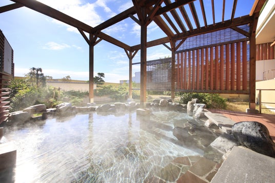 海と空の青さに包まれる開放感あふれる貸切露天風呂