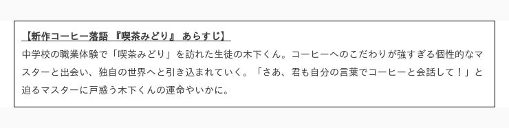 新作コーヒー落語 「喫茶みどり」が誕生するまで