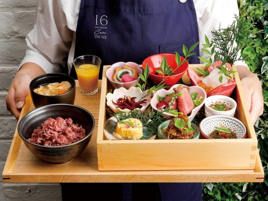 古くから親しまれる和食の基本形"一汁三菜"に三菜を付け加えた「一汁六菜」を、カジュアルな定食でお楽しみいただけるレストラン。