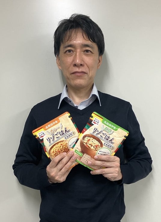 リゾごはんを手に横田さん開発者よりひとこと(株)永谷園 業務用営業部 横田 慎
