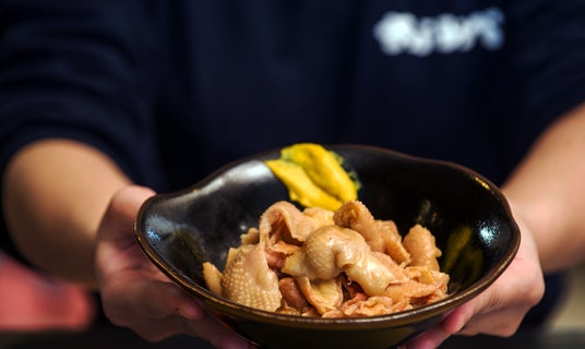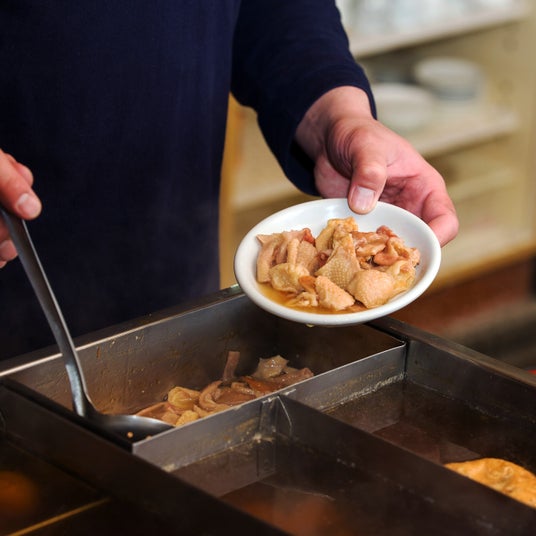 それを余すことなく使用し、とり白菜鍋を作りました。それは料理と呼ぶよりも寒さに震える人々を暖かくした「ご飯」です。昭和二十五年。戦後間もない時代、先代 三郎平氏は、素材ひとつひとつを大切にしながら、お客様に喜ばれる味を試行錯誤し「秘伝の醤油だれ」を、造りあげました。鮮度の良い鶏肉と白菜を、専用鍋で焼き、秘伝の醤油だれと卵で食す。ただただ、それだけ。シンプルで満たされるご馳走です。