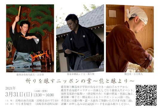 また令和6年3月31日(日)には、復興支援のチャリティー企画として、能楽の入門イベント「祈りを醸すニッポンの業~能と醸より~」を長崎市内で執り行います。