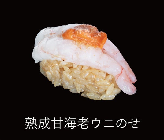 2)熟成甘海老ウニのせ研究に研究を重ねたAburi TORAの氷結熟成技術によって甘海老の旨味を極限まで引き出しました。さらに、黄身醤油とウニのマリアージュでいくつもの味が複雑に混ざり合う至極の一貫です。