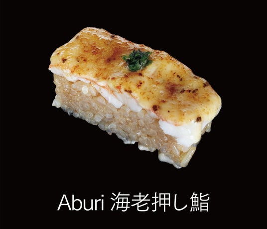 7)Aburi海老押し鮨カナダで大ブレイクしたAburi Styleの海老押し鮨は、サーモンに次ぐ人気商品で皆様にご好評いただいております。オリジナル梅ソースと海老の相性は抜群で、その清涼感と重厚感は新しい鮨の醍醐味を感じて頂けます。