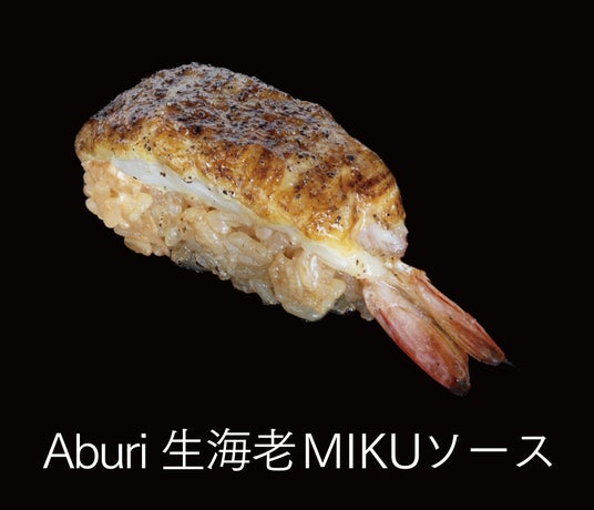 5)Aburi生海老MIKUソースAburi TORAオリジナルソースと生海老の相性は抜群で、噛んだ瞬間の確かな食感とともに、ソースの風味と香ばしさが口いっぱいに広がります。ネタとのマリアージュが新感覚のお鮨です。