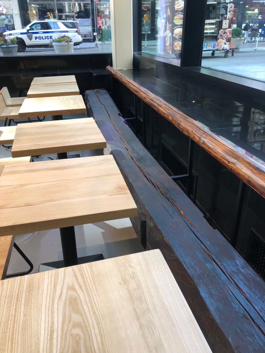 Broadway store の店舗デザインのコンセプトは「侘び寂び」。風化する自然素材のみで空間を構成し、日本の侘び寂びの精神を表現しています。店内で使用しているベンチの一部は、日本で古民家に使われていた木材と束石(※1)を再利用し、時代を超え、100年経ってもそこに存在するお店としてデザインが施されています。