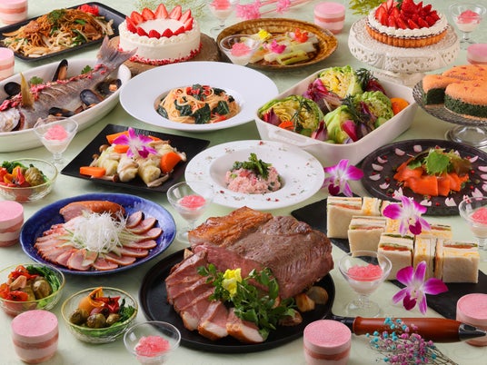 イベント期間中、1Fレストラン&カフェ「セレース」ではお花見をイメージしたSakura Gardenビュッフェを開催。色鮮やかでバラエティ豊かな料理と、苺や桜をテーマにしたスイーツは老若男女問わずお愉しみいただけます。
