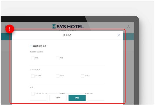 「見つけやすさ」と「わかりやすさ」を追求するために、プラン・客室の絞り込み機能のデザインを見直しました。絞り込み条件は、自由自在に設定することができます。