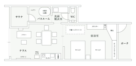 黒を基調とした落ち着いたデザインの室内とカスタマイズできる設備で、あなただけの至高のととのいをご体験ください。