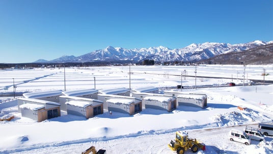 新潟県妙高市は冬になると1日に1m以上降雪することもある豪雪地です。大雪の後には、宿泊棟の前に積もったふかふかの雪へのダイブが体験できます。