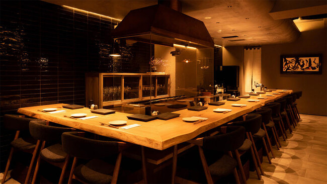 お肉の品種に何よりもこだわり、中でもその日の一番良い部位を厳選して提供する鉄板焼店。店内は豪華でハイセンス。