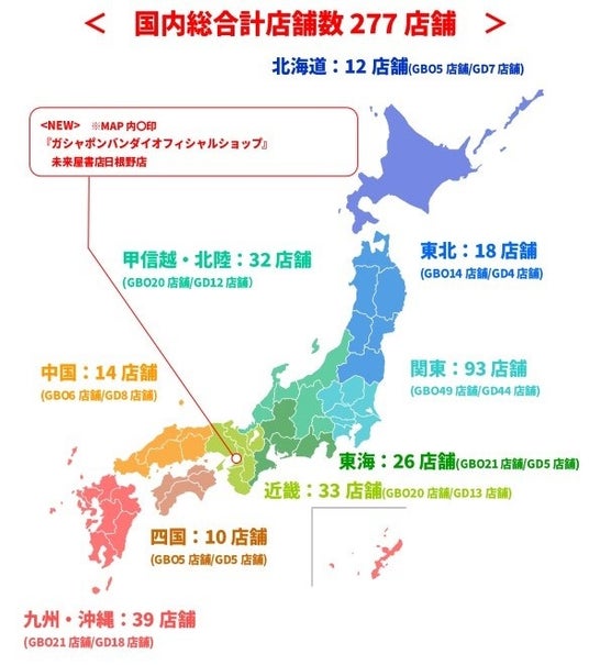 『ガシャポンバンダイオフィシャルショップ』未来屋書店日根野店は、300面を一堂に展開するバンダイ公式の大型カプセルトイ専門店として、大阪府泉佐野市に出店します。バンダイの新商品をすべて取りそろえ、ここでしか味わえない「ガシャポン体験」を提供することで、「ガシャポン」の新たな魅力を発信していきます。また書店ならではのガシャポン体験をお届けするべく、随時お客さまへキャンペーン情報の発信等を行ってまいります。