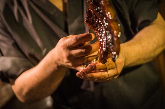 さらに、量深「秘伝のたれ」をたっぷりかけ、混ぜることで、黄金のような照りを放つ極上の鰻めしとなります。