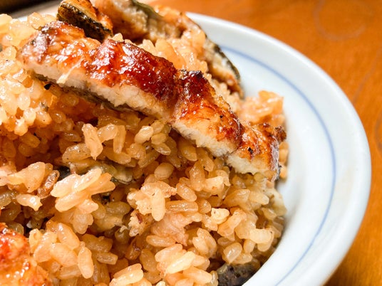 ご飯と一緒に炊き込むことで、米が鰻の脂をまといます。