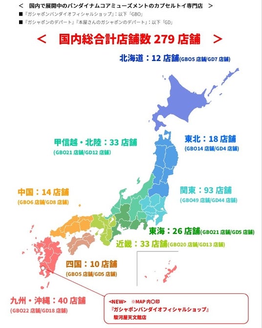 < 国内で展開中のバンダイナムコアミューズメントのカプセルトイ専門店 >