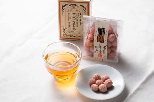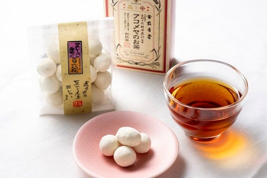 コクのある甘みは烏龍茶との相性がよいと云われています。「小梅大豆」の梅とざらめの甘じょっぱい味わいを、和烏龍茶の芳しい花のような香りが包み込み、お互いの良さを引き立てます。