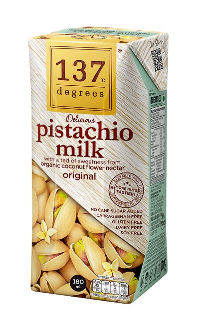 「137degrees」は、誰でも飲める美味しいミルクを作りたいという創業者の想いから生まれた植物性ミルクです。定番のアーモンドだけでなく、ピスタチオやウォールナッツの魅力のラインナップを揃えております。また、パッケージデザインが高級感あふれる金色にリニューアルいたします。