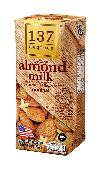 HARUNAでは、2016年よりタイの本格派ナッツミルクブランド「137degrees」の取り扱いを開始しました。137degreesシリーズは、クリーミーかつ優しい甘さで飲みやすい植物性ミルクが使用されており、香料・着色料・甘味料・安定剤・増粘剤・乳化剤不使用で、ナッツ由来の香ばしさと優しい甘さを感じられます。植物性ミルクながら濃厚な味わいで、乳代替え飲料として乳製品アレルギーの方からも好評をいただいております。