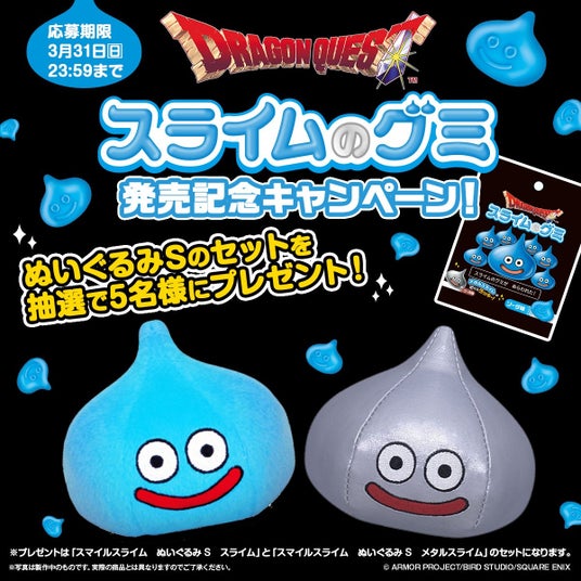 ※プレゼントは「スマイルスライム ぬいぐるみS スライム」と「スマイルスライム ぬいぐるみS メタルスライム」のセットになります。