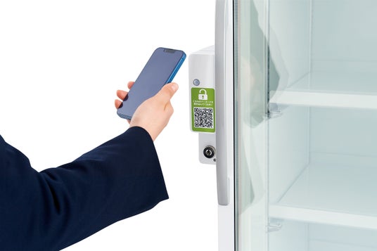 電気錠付リーチインショーケースと連携し、スマートフォン等で商品を購入可能。〇アプリダウンロードが不要