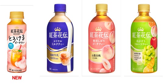 「紅茶花伝 クラフティー 贅沢しぼりピーチティー」、「紅茶花伝 クラフティー 白ぶどうフルーツティー」