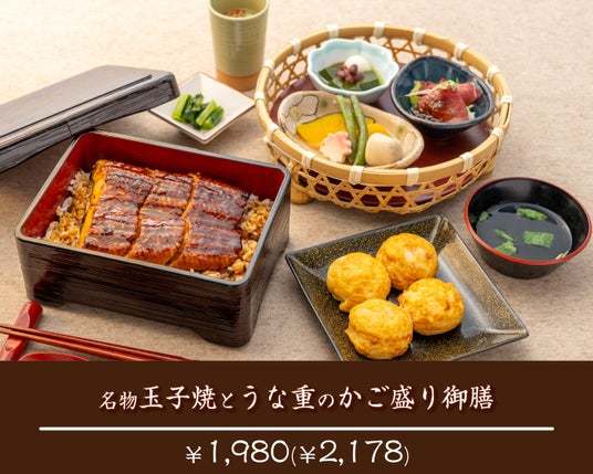 ・名物玉子焼とうな重のかご盛りセット 1,980円(税込み2,178円)