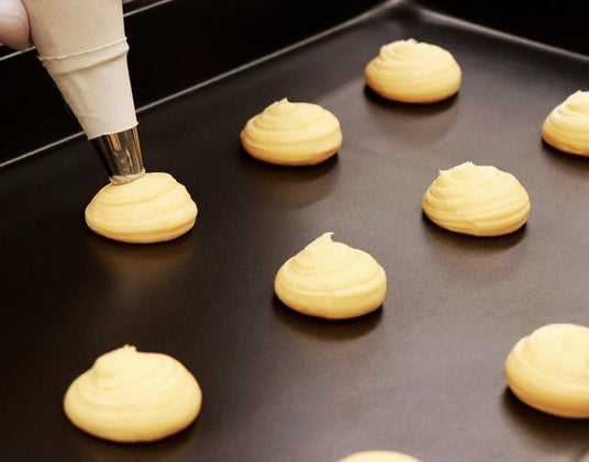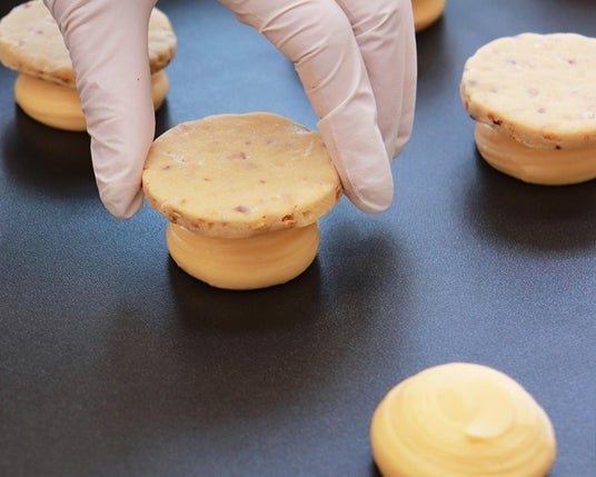 絞ったシュー生地に冷凍のままのせて焼成するだけの簡単オペレーション